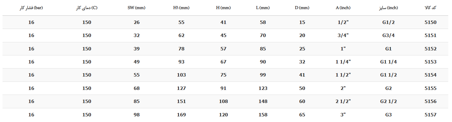بدنه اصلی : MS58 برنج فورج پذیر(1/2 2 و 3 ریخته گری)